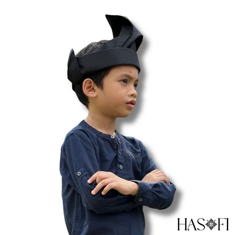 Premium Tengkolok with authentic folded design and gold threading, representing the pinnacle of Malay royal headwear.